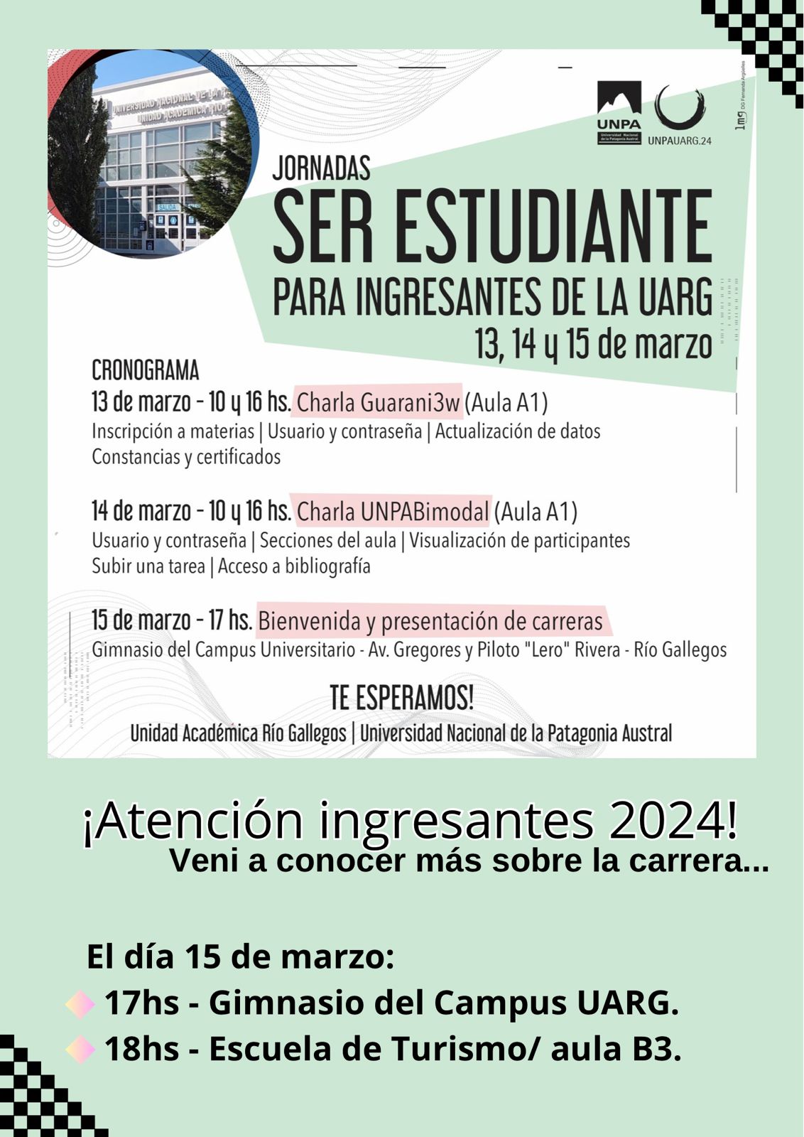 El viernes 15 de marzo de 2024 a las 17:00 horas se realizará la Jornada Ser Estudiante en el Gimnasio de la UARG.