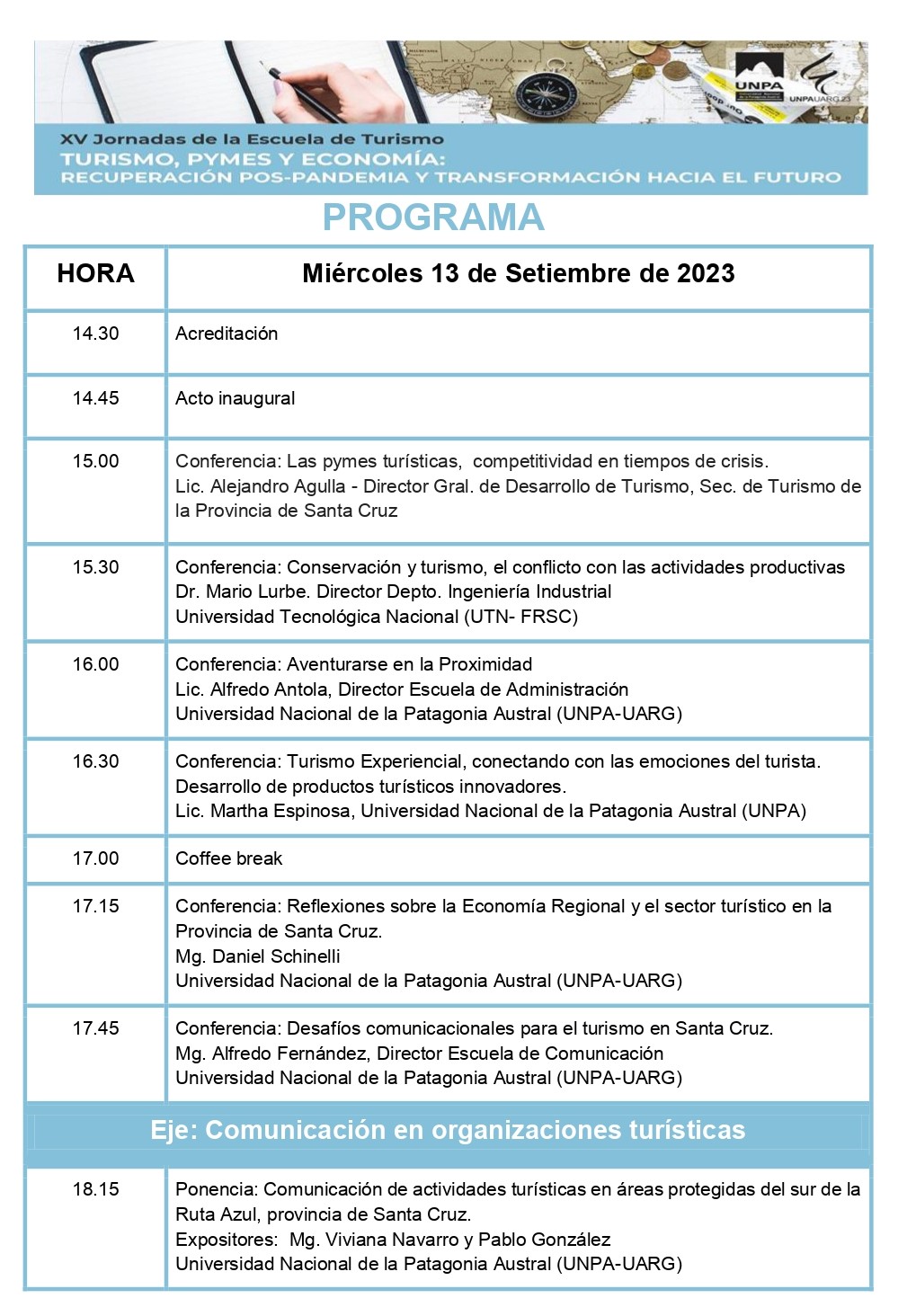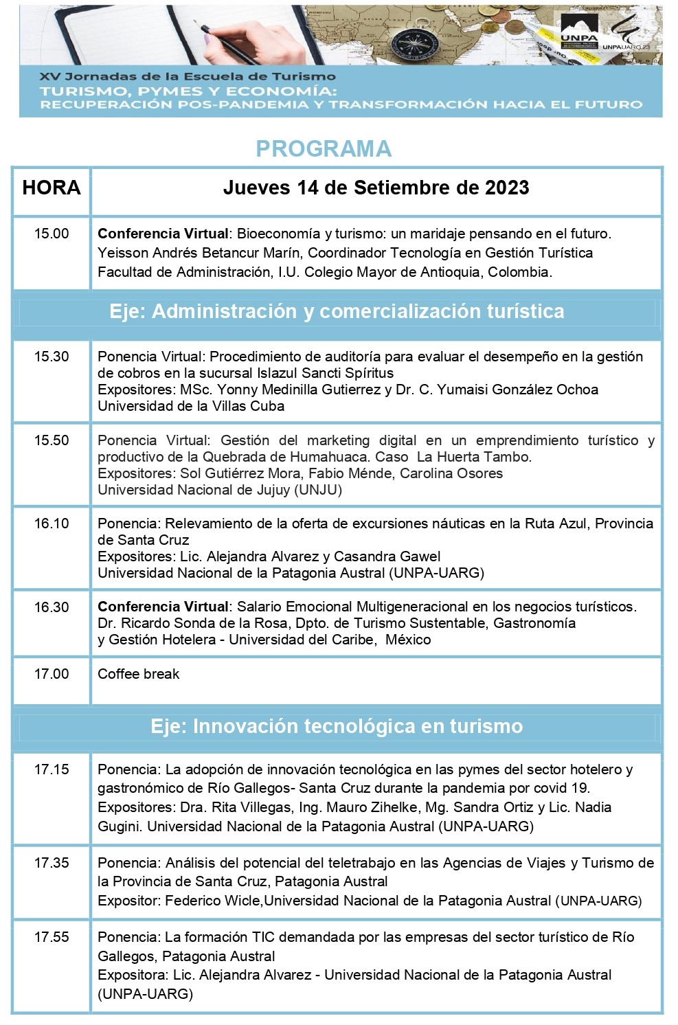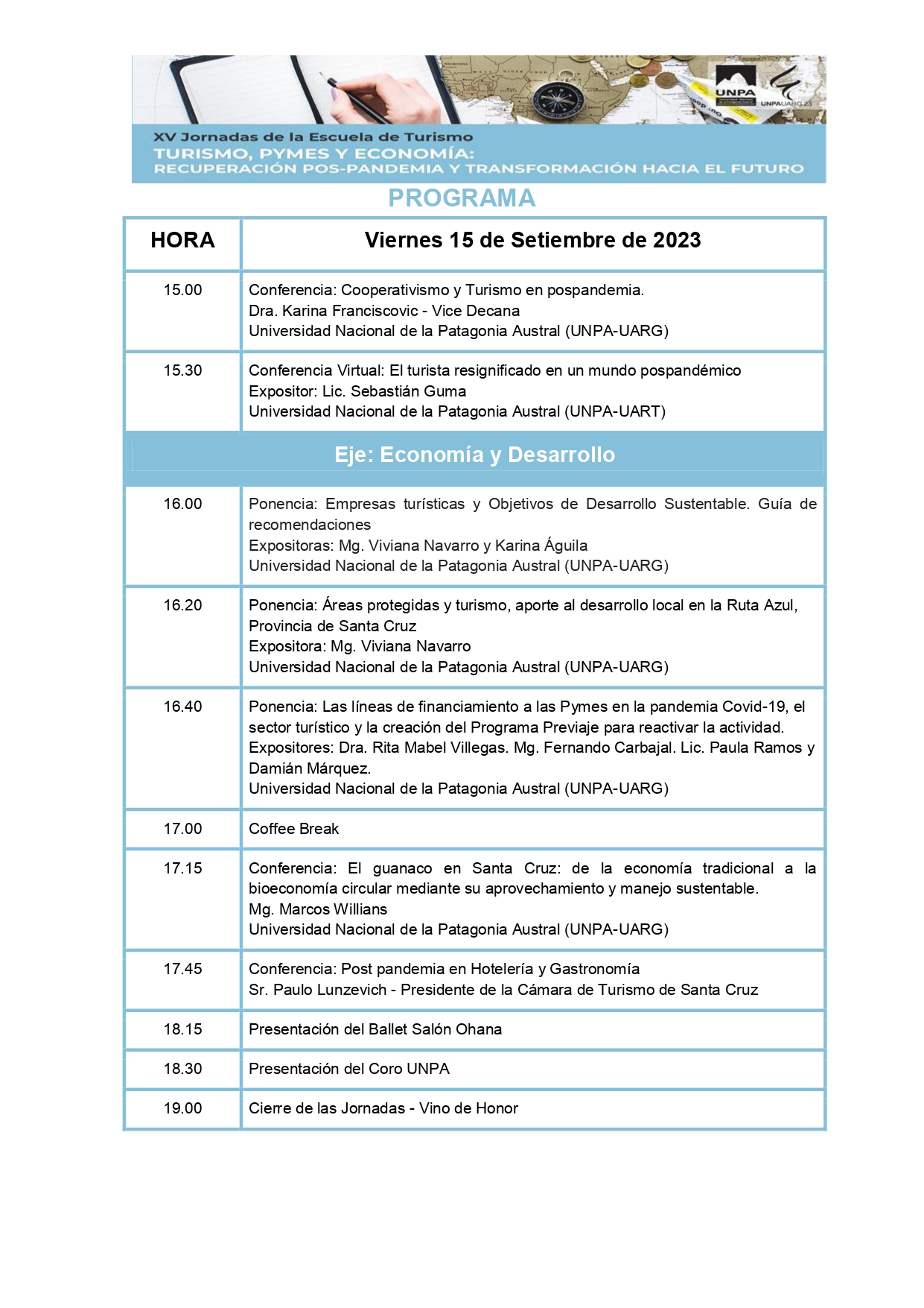 Programa de las XV Jornadas de Escuela de Turismo UARG