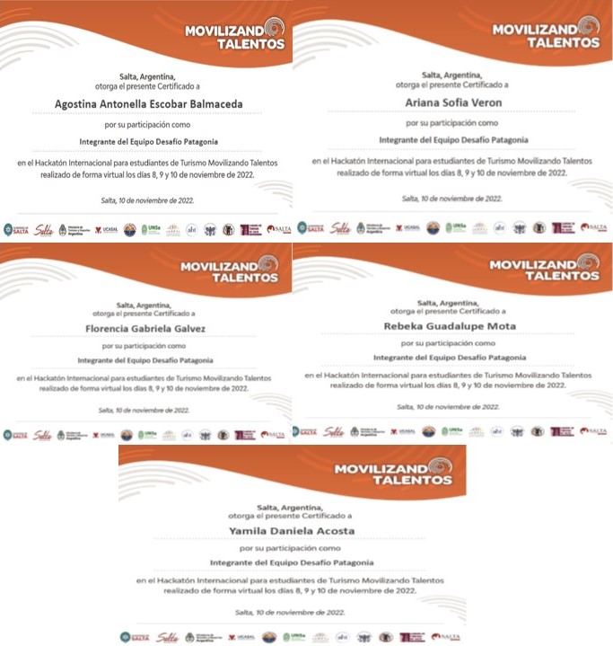 La Escuela de Turismo UARG, participo con un  equipo de 5 alumnas y las acompaño como docente tutora la Lic. Alejandra Alvarez, el equipo se denominó “Desafío Patagonia y estuvo integrado por: