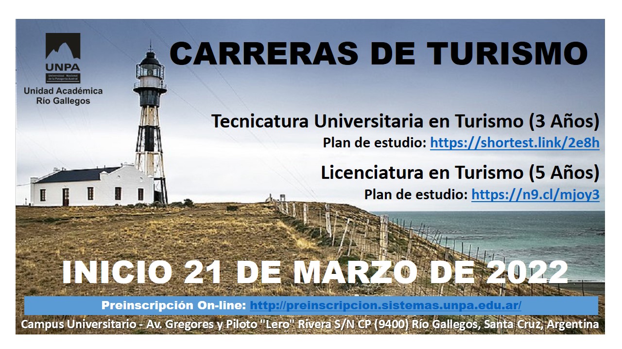 Preinscripción on-line: http://preinscripcion.sistemas.unpa.edu.ar